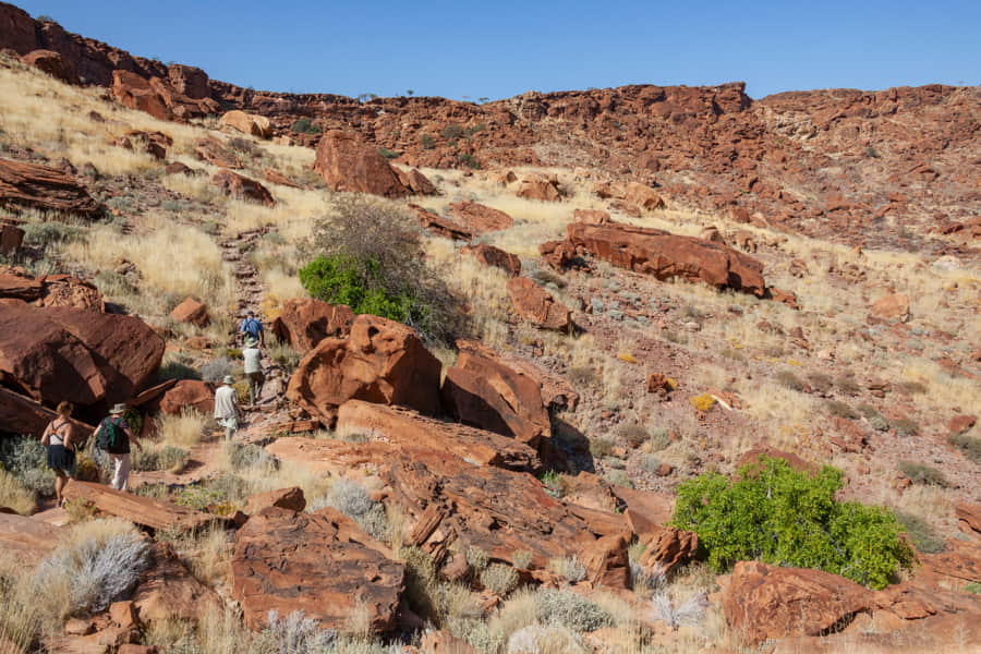 Un paraíso terrenal en el suroeste de África. La mejor época para visitar Namibia es de mayo a noviembre, temporada seca, con temperaturas diurnas agradables que le permitirán descubrir las vastas dunas de arena roja del desierto del Namib explorar la costa de los esqueletos, realizar un safari fotográfico en Etosha, conocer la cultura de las tribus herero e himba, colaborar en la captura y descornado de rinocerontes, para protegerlos de la caza furtiva, o maravillarse ante las pinturas rupestres de los Bosquimanos en Twyfelfontein. ¡Namibia le dejará sin aliento!